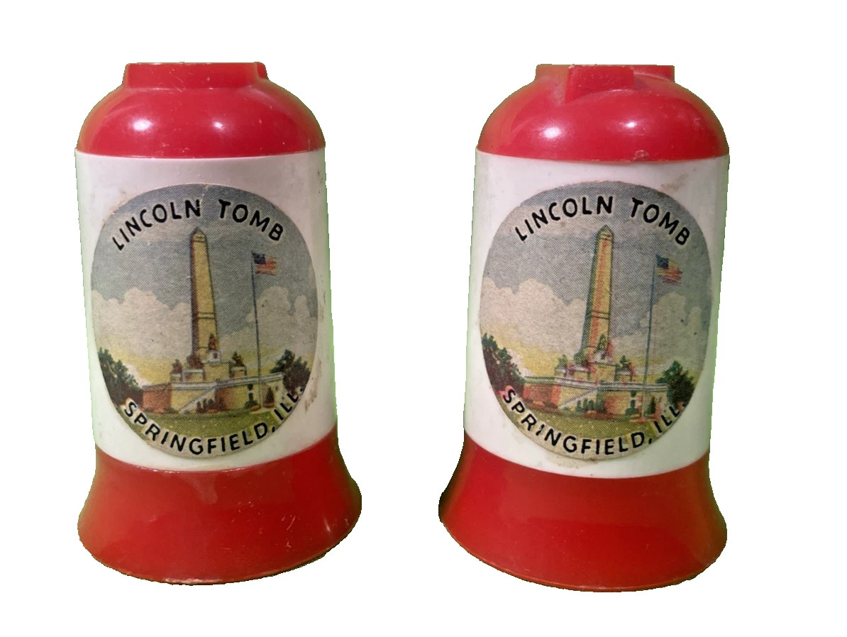 These Cute Vintage Salt & Pepper shakers features Lincoln's Tomb in Springfield, Illinois These ceramic Salt & Pepper Shakers measure 2 1/2 inches tall x 1 1/2 inches in diameter.